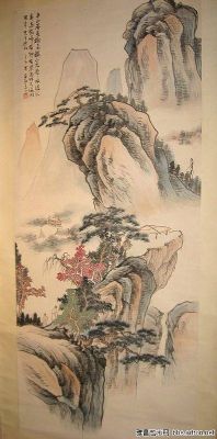 俞剑华 --设色山水大幅精品 (南京静心斋保真)旧裱